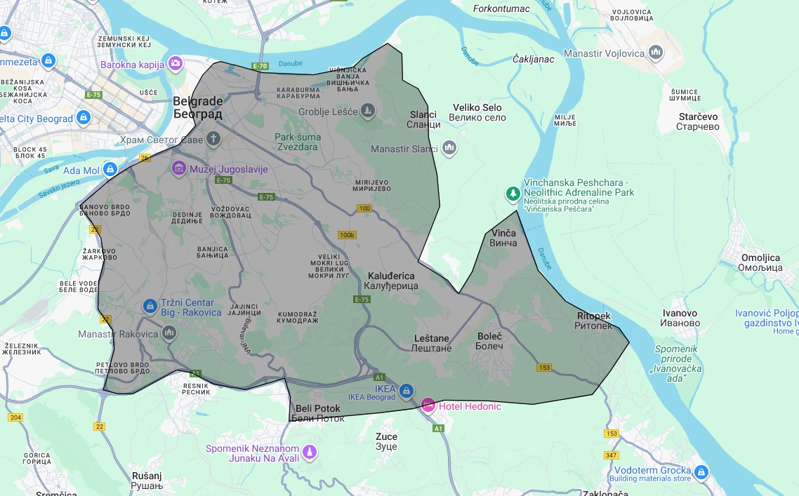 Zona dostave na teritoriji Beograda prikazana je na mapi